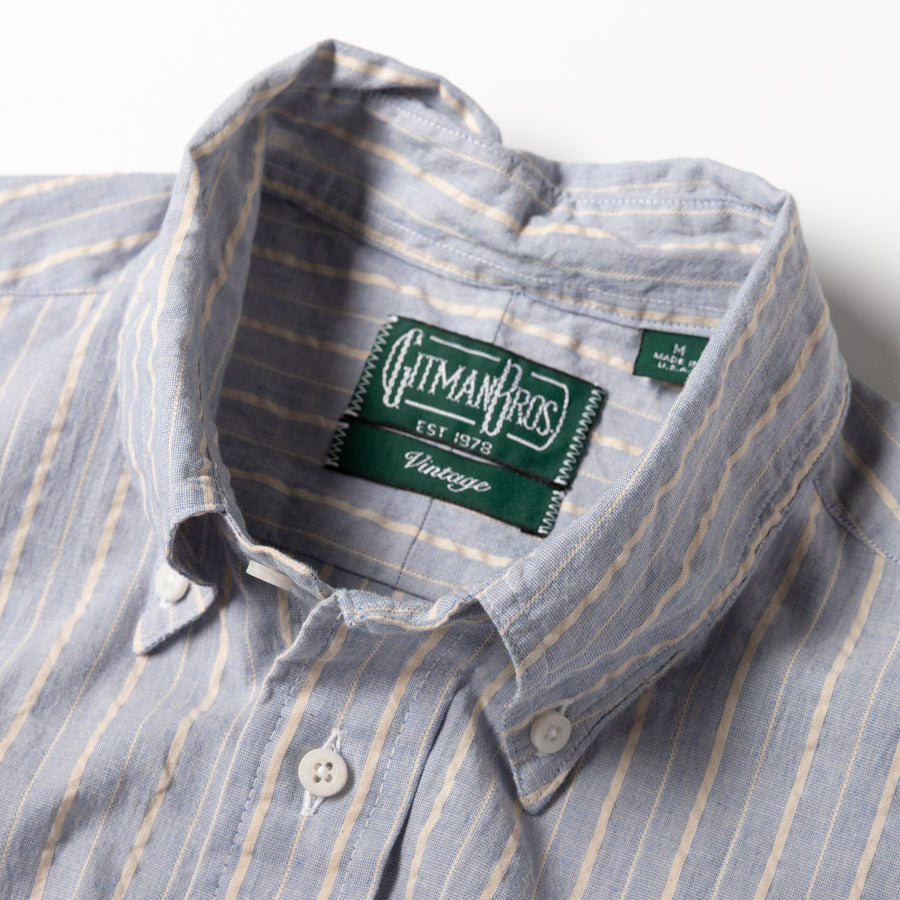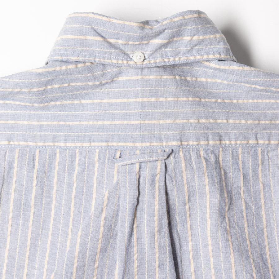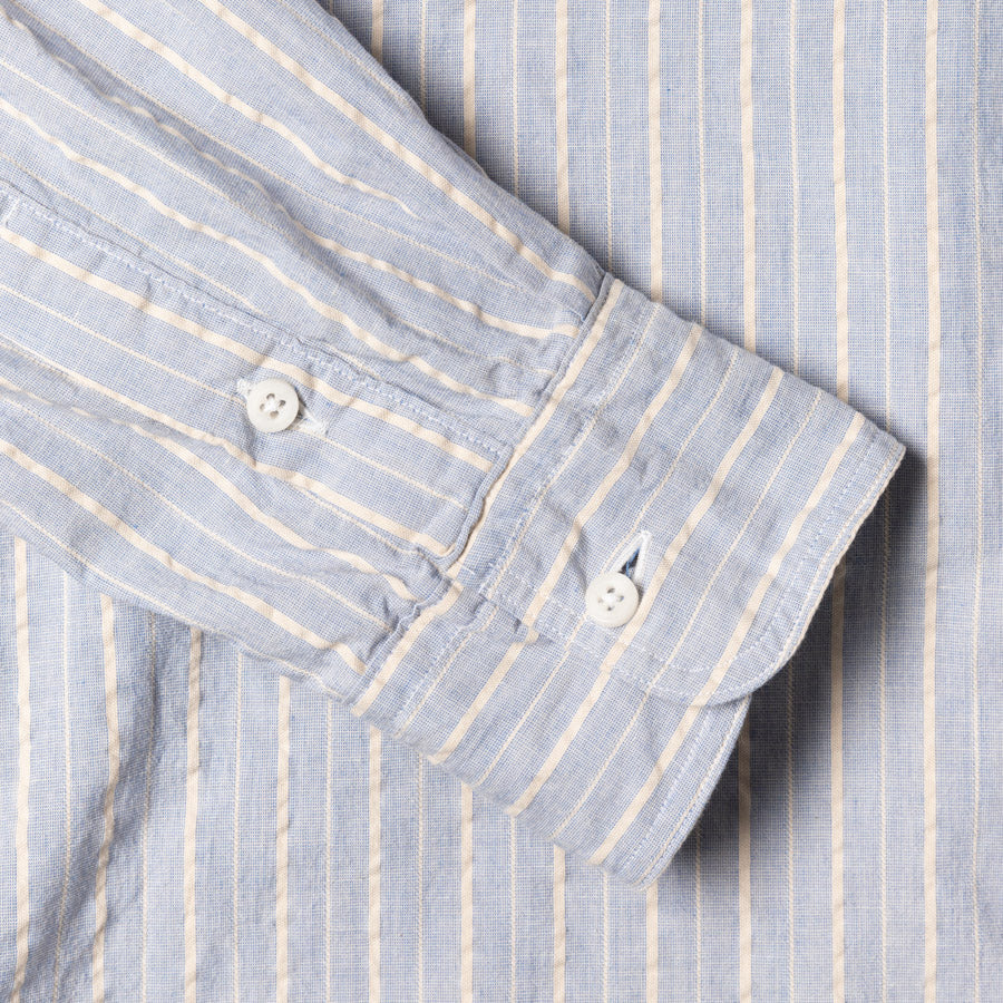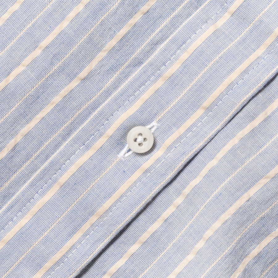 No two dobby stripe fabrics are the same, and that's by design. Known for their endless variability, dobby looms can create manipulate yarns unlike any other. This fabric is a clear example, and combines three different weave structures into one throughout a lightweight and breathable base cloth. It will wear wonderfully during the hottest days of summer, or through spring's milder days.