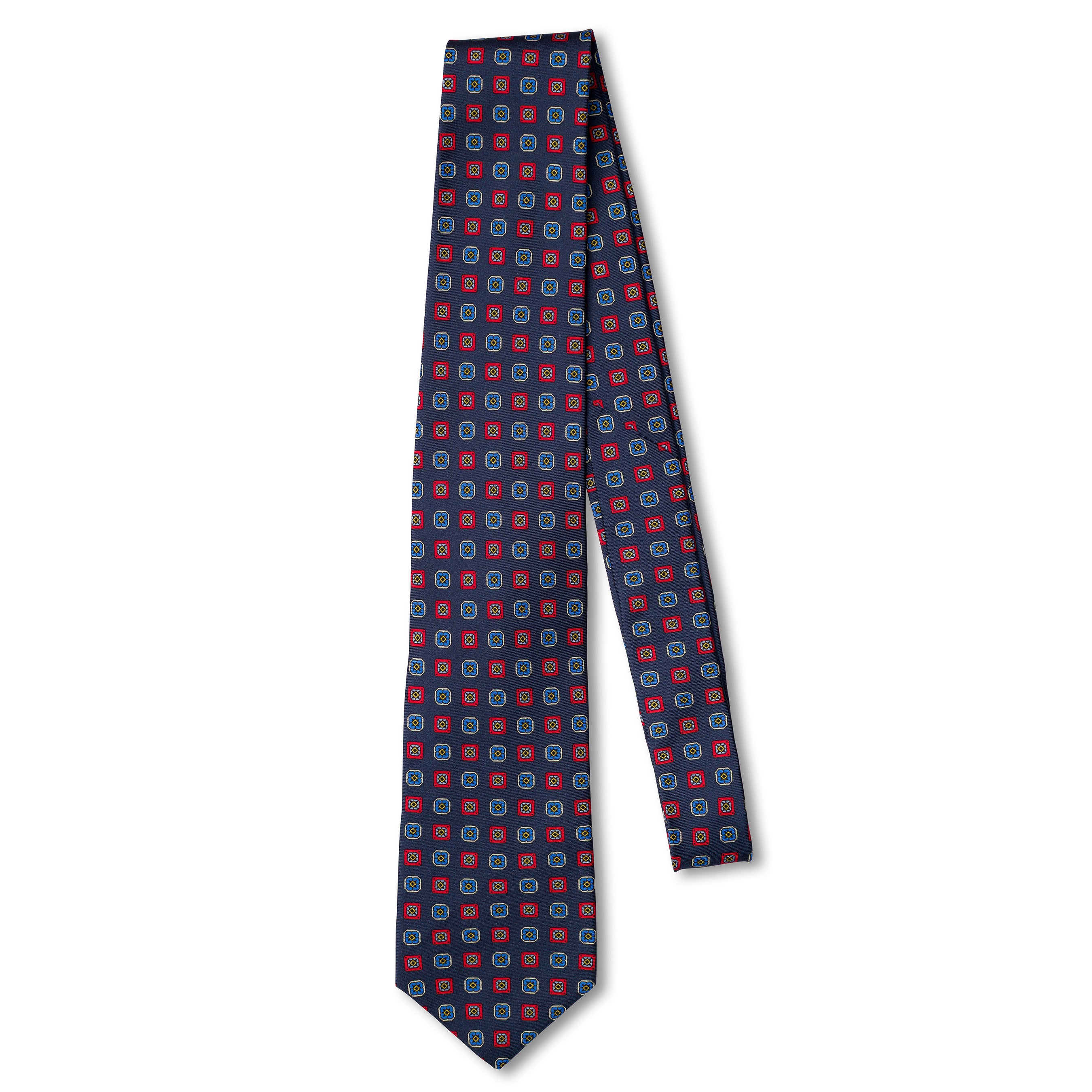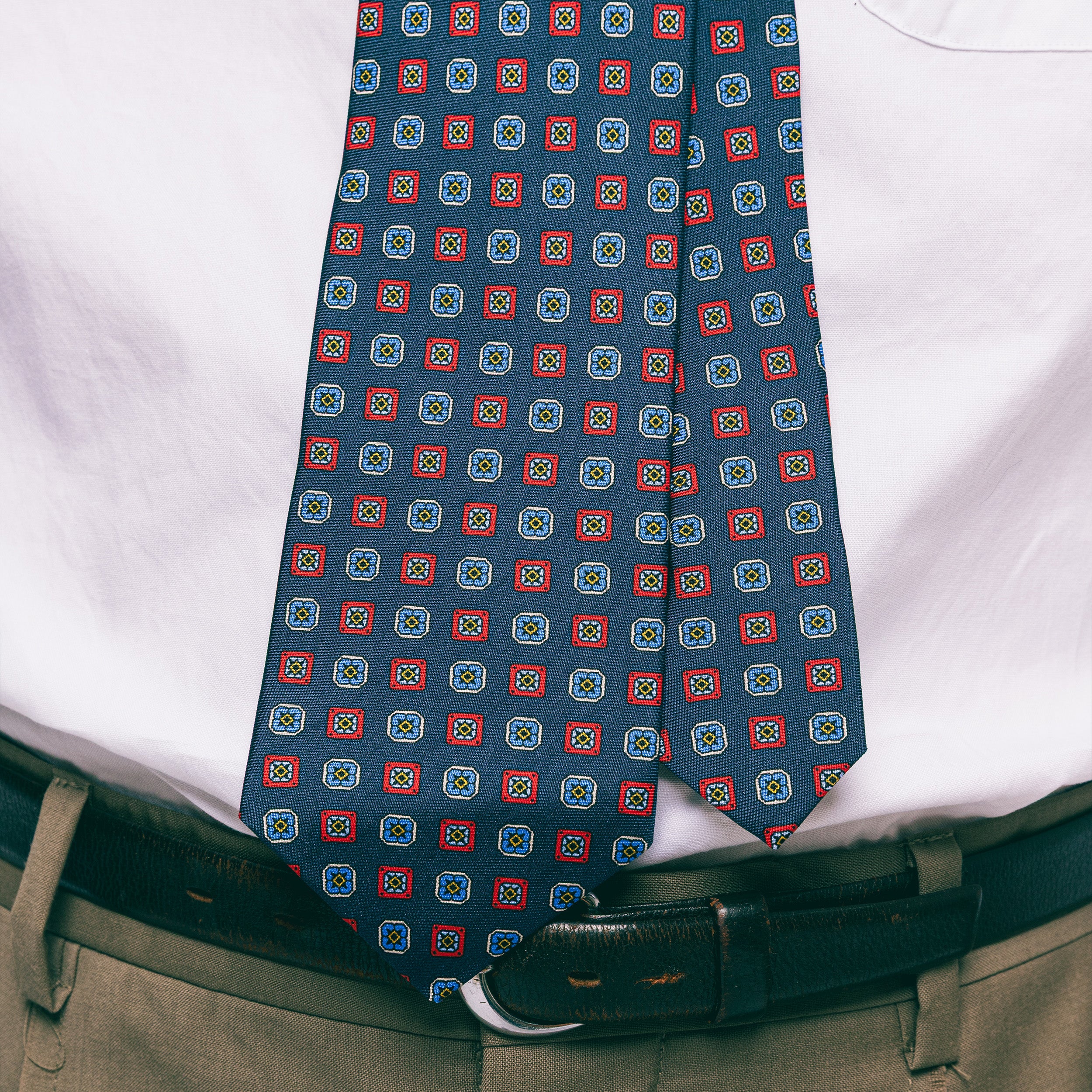 Woven and printed in Como, Italy, this fabric features an archival medallion pattern rendered in traditional tones of blues and reds. We love its formality and gravitas, but with plenty of stylistic versatility, this tie can be styled for any occasion you please.