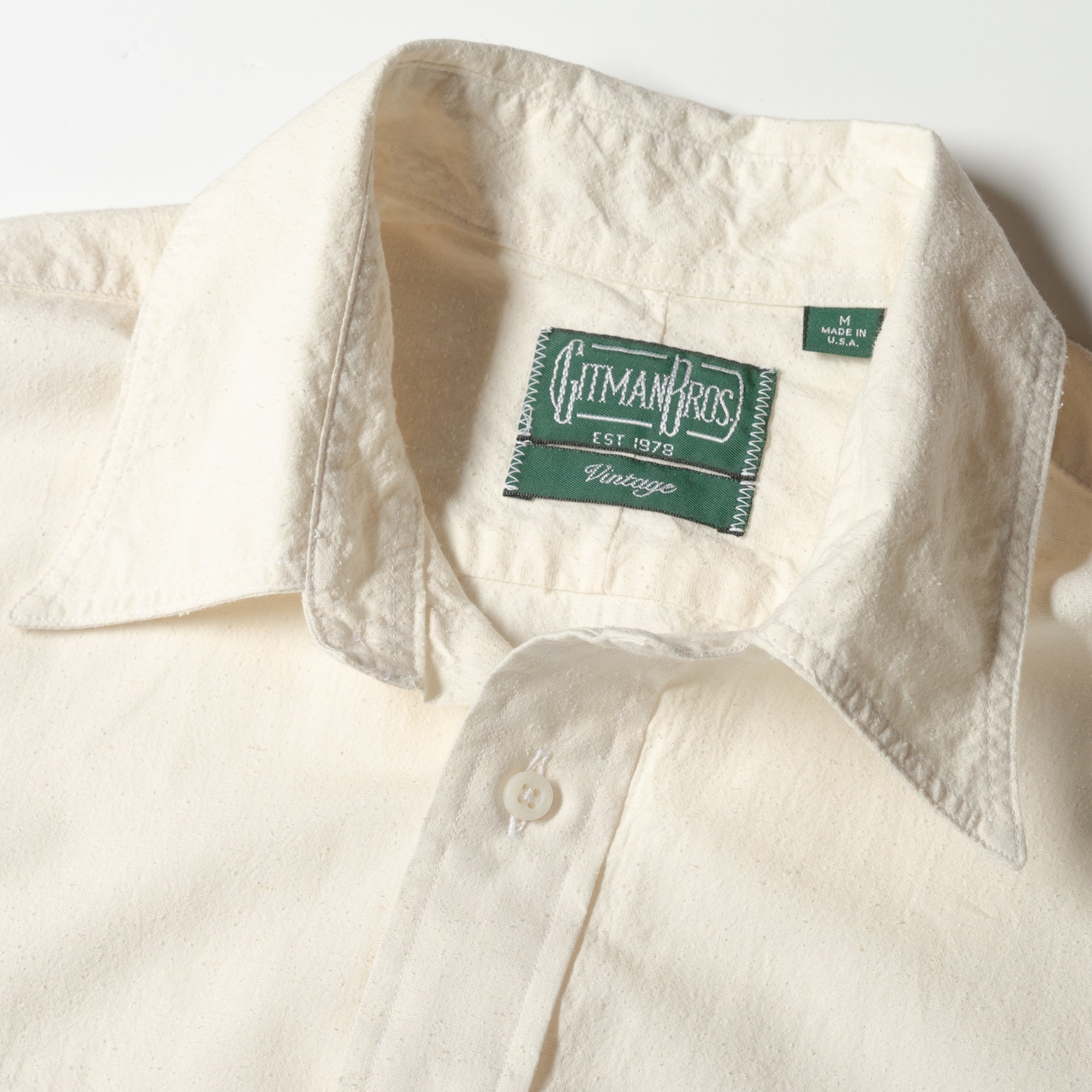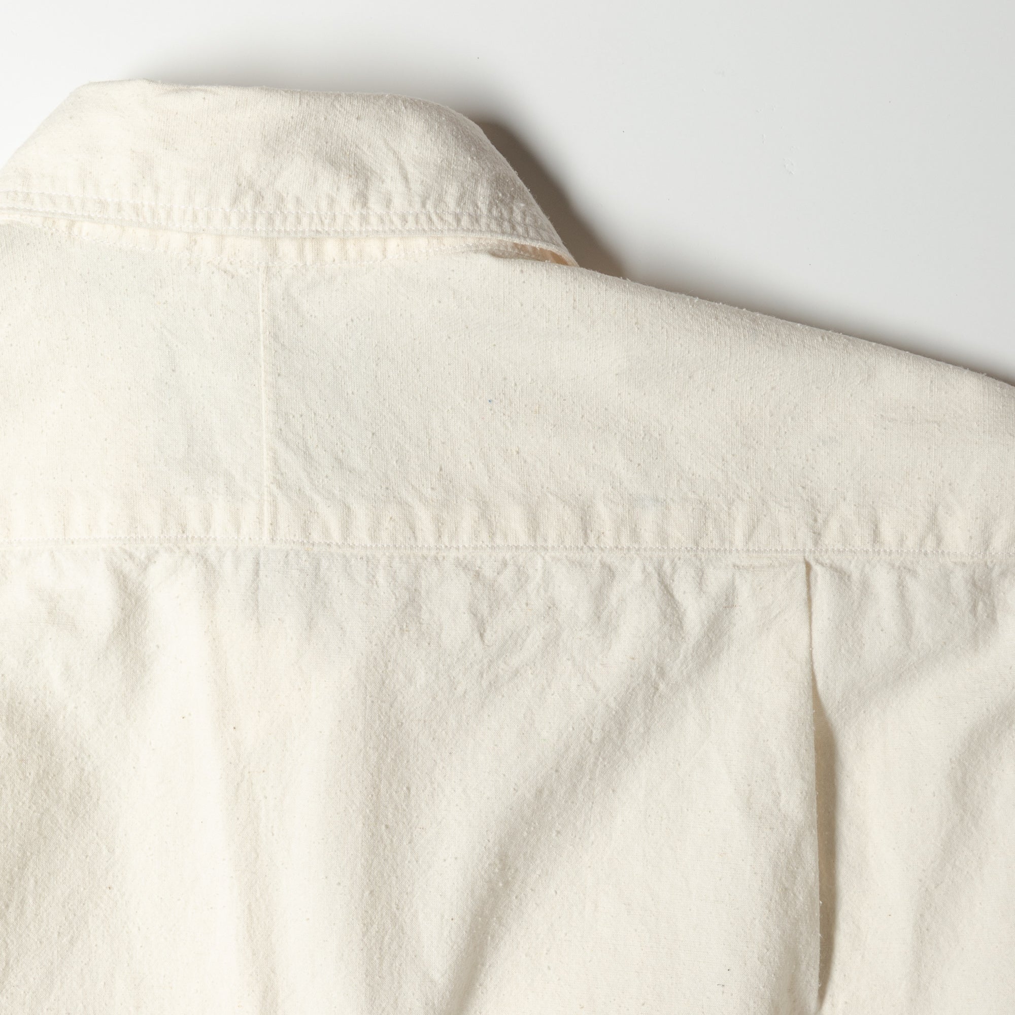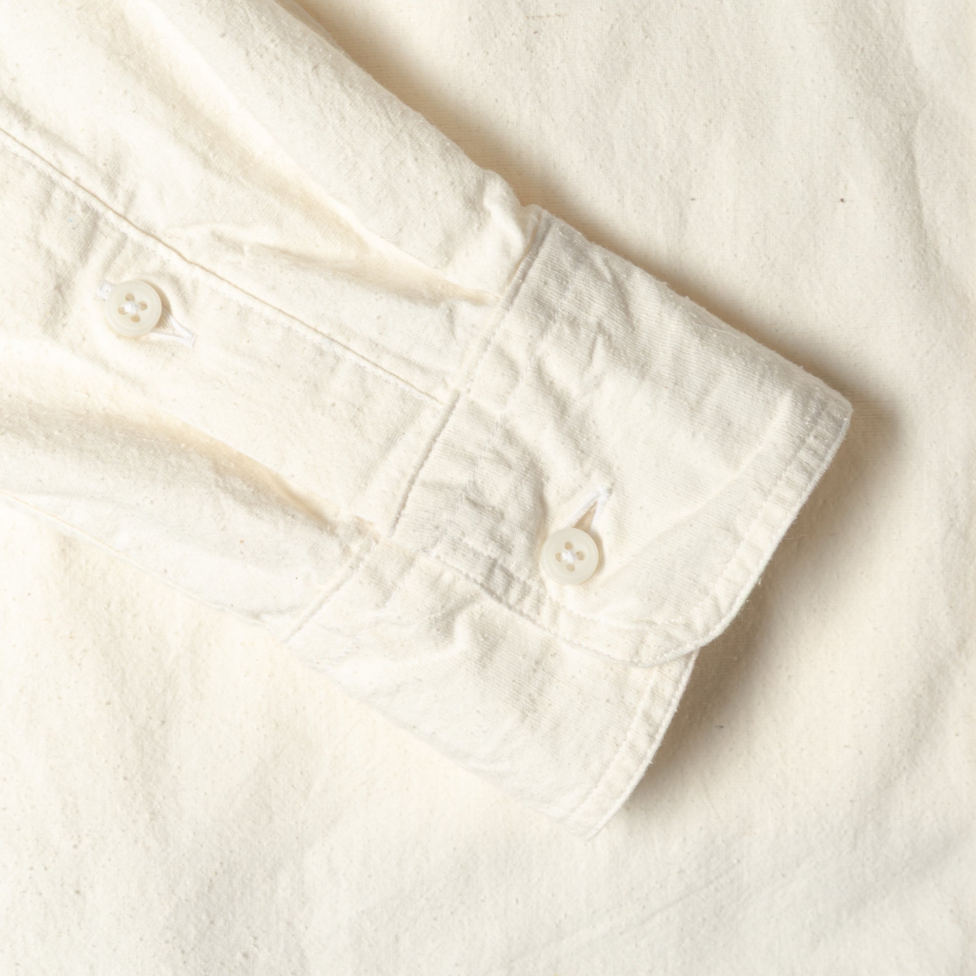 Not your average silk shirt! Opting for a raw, unprocessed silk fiber, our Japanese partner mill created a textural and functional fabric that wears like nothing else in our shirting lineup. Known for its breathability, raw silk is not striped of any organic compounds, and maintains its original irregular size and matte finish. Spun with a bit of cotton, these fibers work together to create an immediately heritage feel.