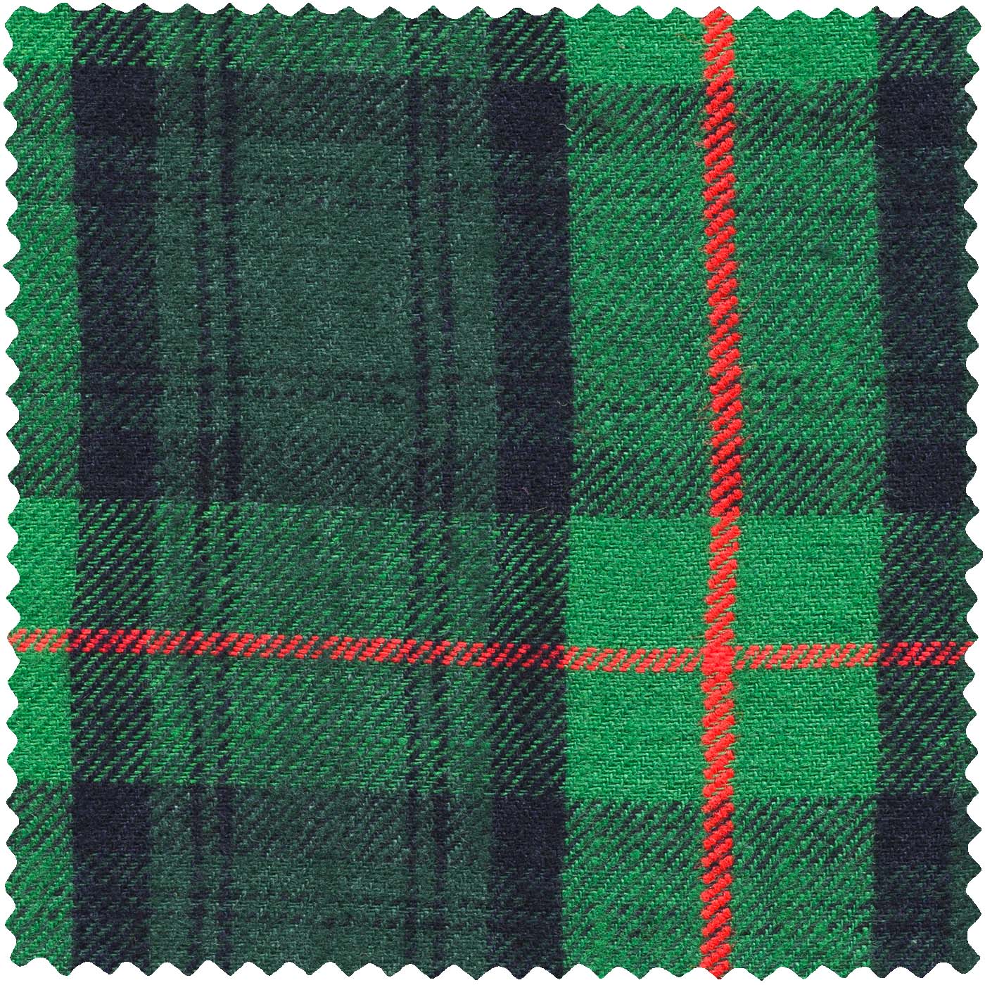 The green and black base cloth features slubbed yarns, a two-step brushing process for softness, and tartan's quintessential 2x2 weave construction.