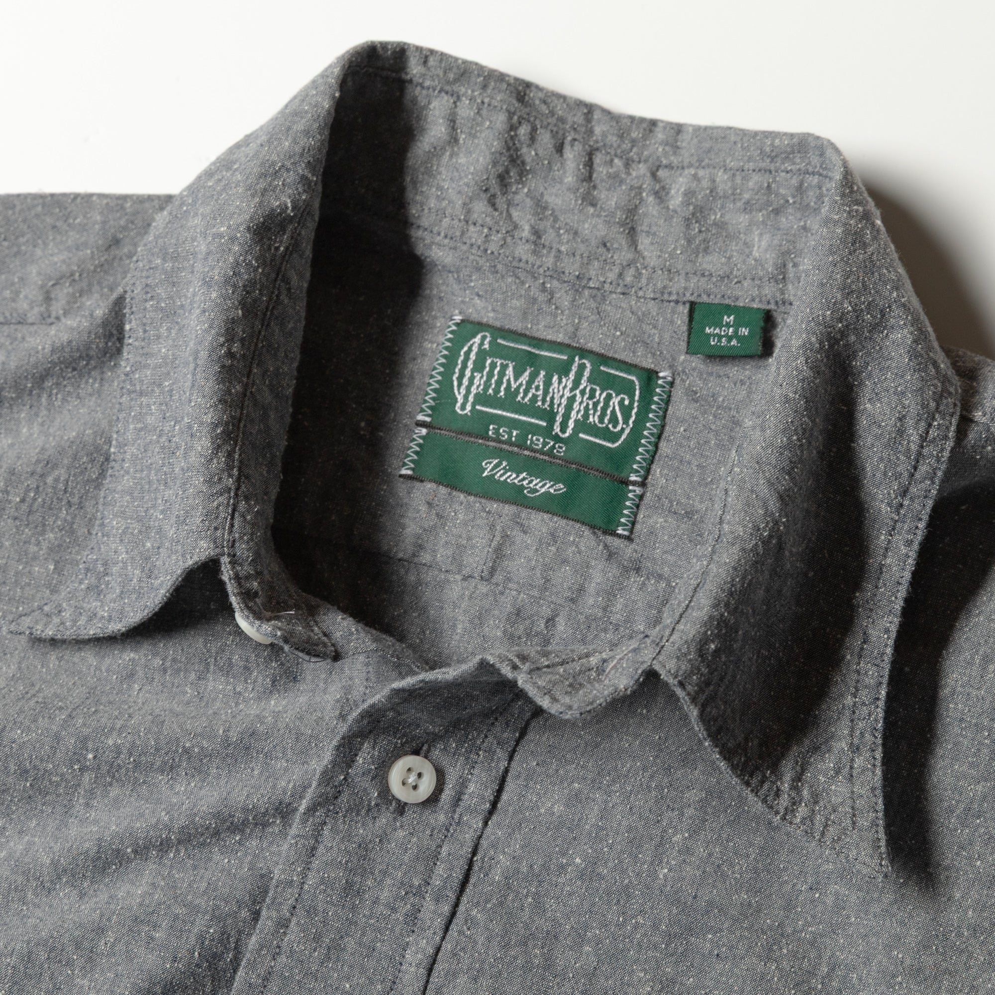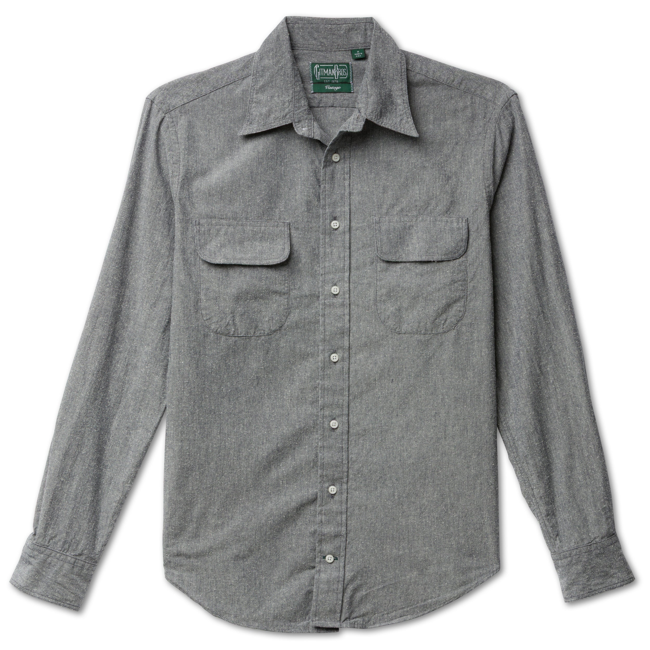We were so drawn to this fabric that we opted for its own shirt model, with two flap pockets and a button-free collar. It's old school, it's raw, and it's become a fast favorite at GV headquarters. Good luck finding another fabric quite like this!