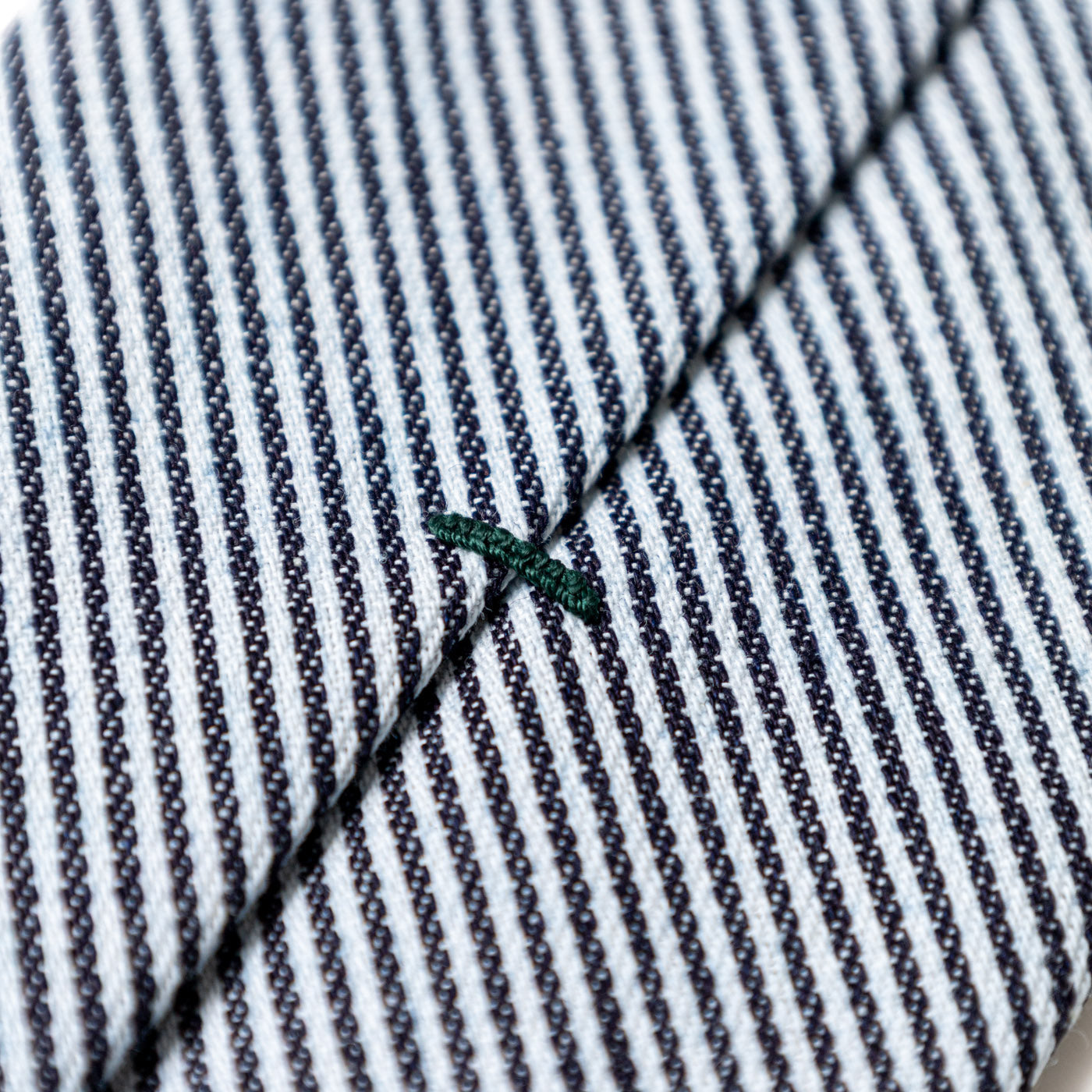 Just like standard denim, our Hickory Stripe Denim is woven from 100% cotton fibers and uses a twill weave to increase durability. With that said, this fabric’s navy and white striped motif, lighter hand, an looser weave distinguish this fabric into its own category. It’s more casual, pre-broken in, and will function far better on warmer days. For that reason, we consider this fabric perfect for all four seasons.