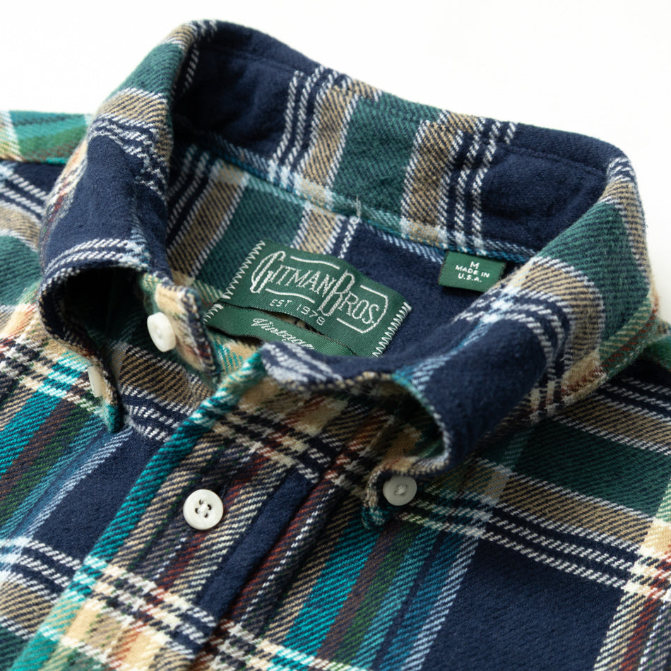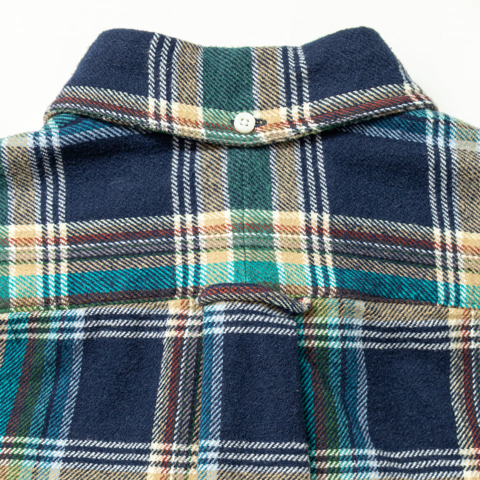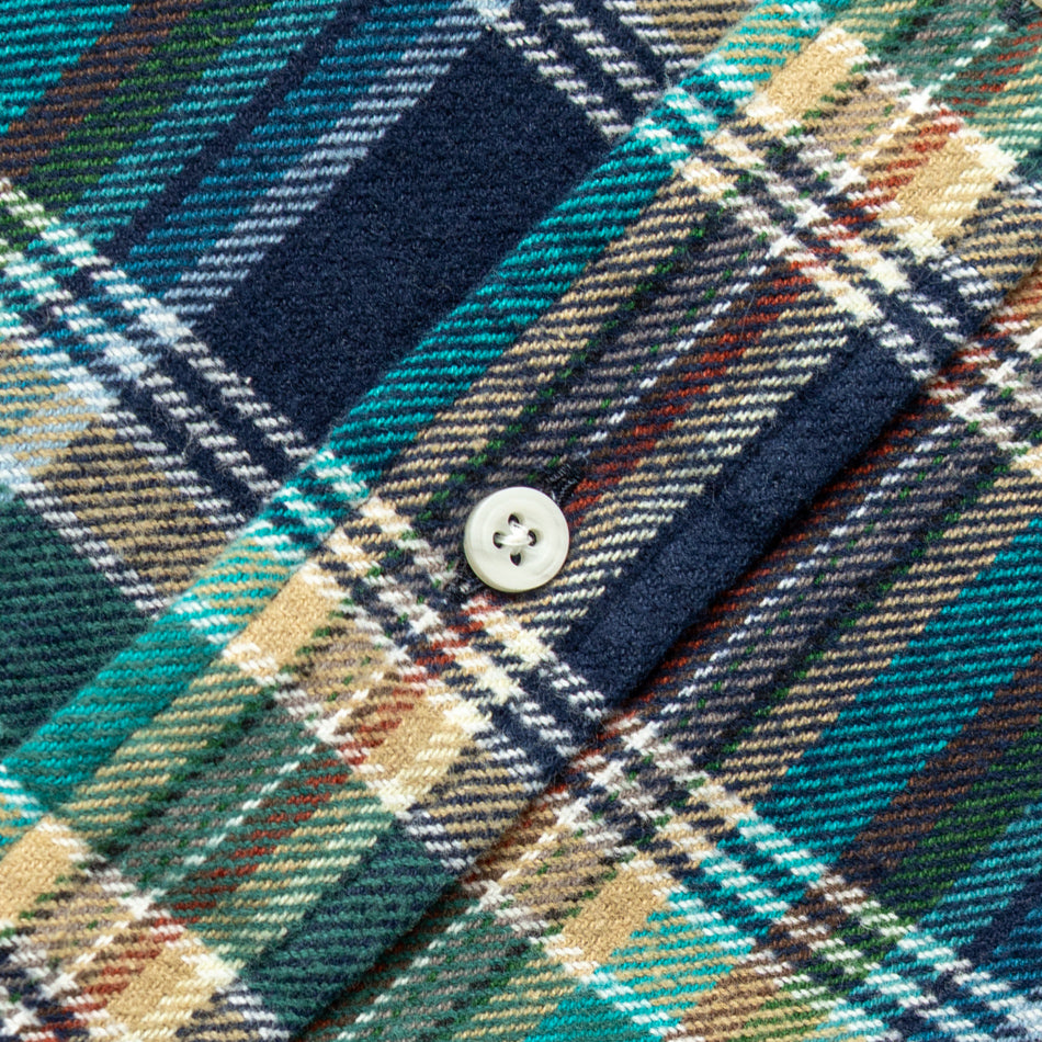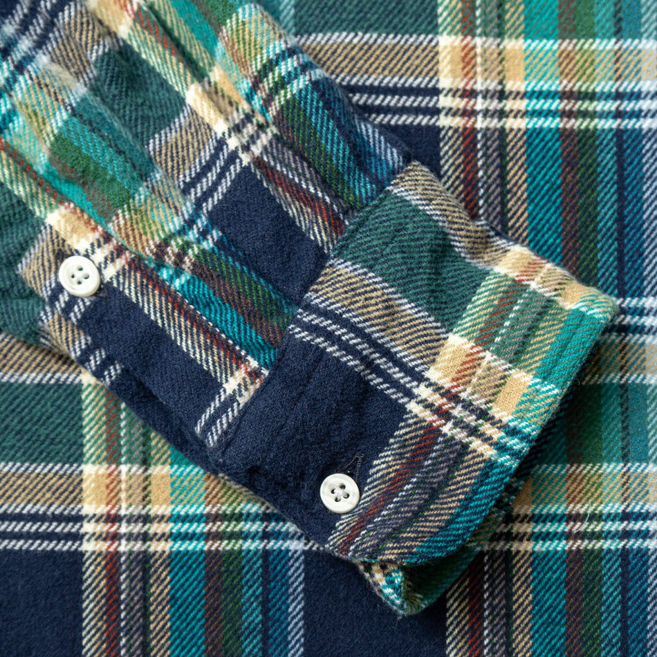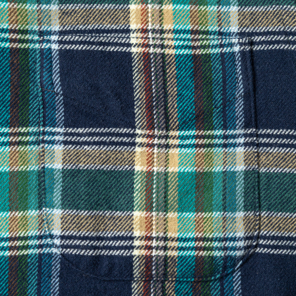 Complimenting its rugged flannel roots, a medley of seasonal yarn-dyed colors reference Madras fabrics from our archive: deep navy, glacial blue, cedar wood tan, and subtle pops of red, evergreen, and white come together in a Madras that's simultaneously vibrant yet wearable. The ultimate result is a shirt that delivers depth, warmth, and wearability in equal measure.
