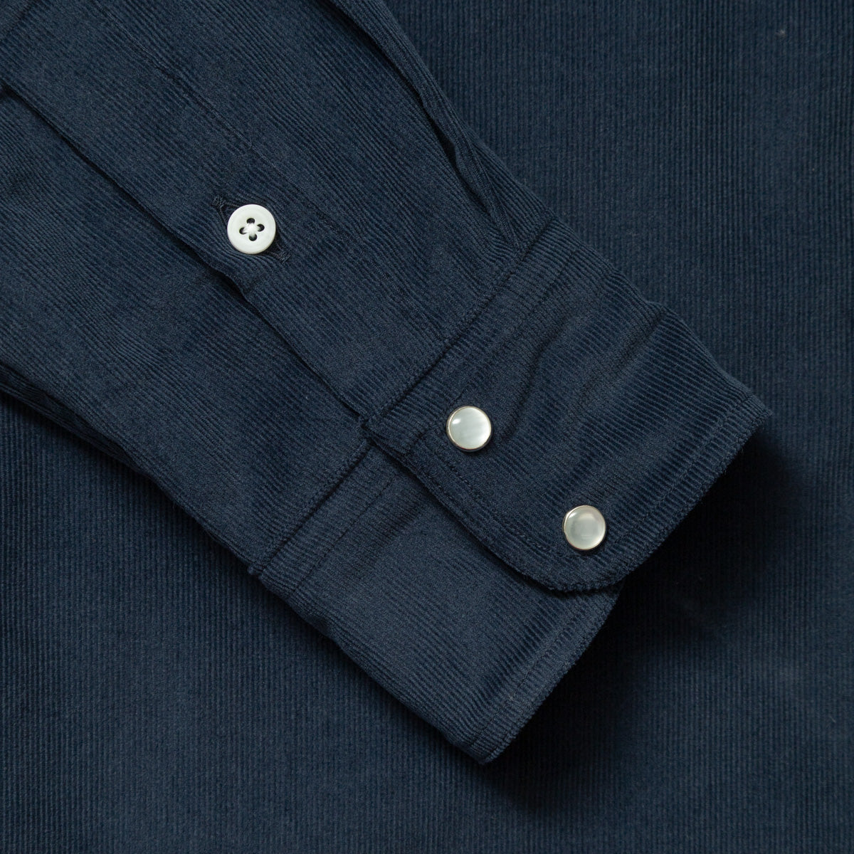 Our partner mill in Japan has been creating proprietary corduroy for us since 2011. This particular corduroy is woven on vintage looms into a mid-weight 4.7oz hand. Although this weight is comparable to our Cambridge Oxfords, corduroy’s unique construction means this fabric is velvety soft and pliable on day one – no break-in needed. Adding a touch of longevity, we asked our partner mill to use a reactive dye process that bonds pigments to the cotton fibers on the molecular level, ensuring colorfastness that will last a lifetime.