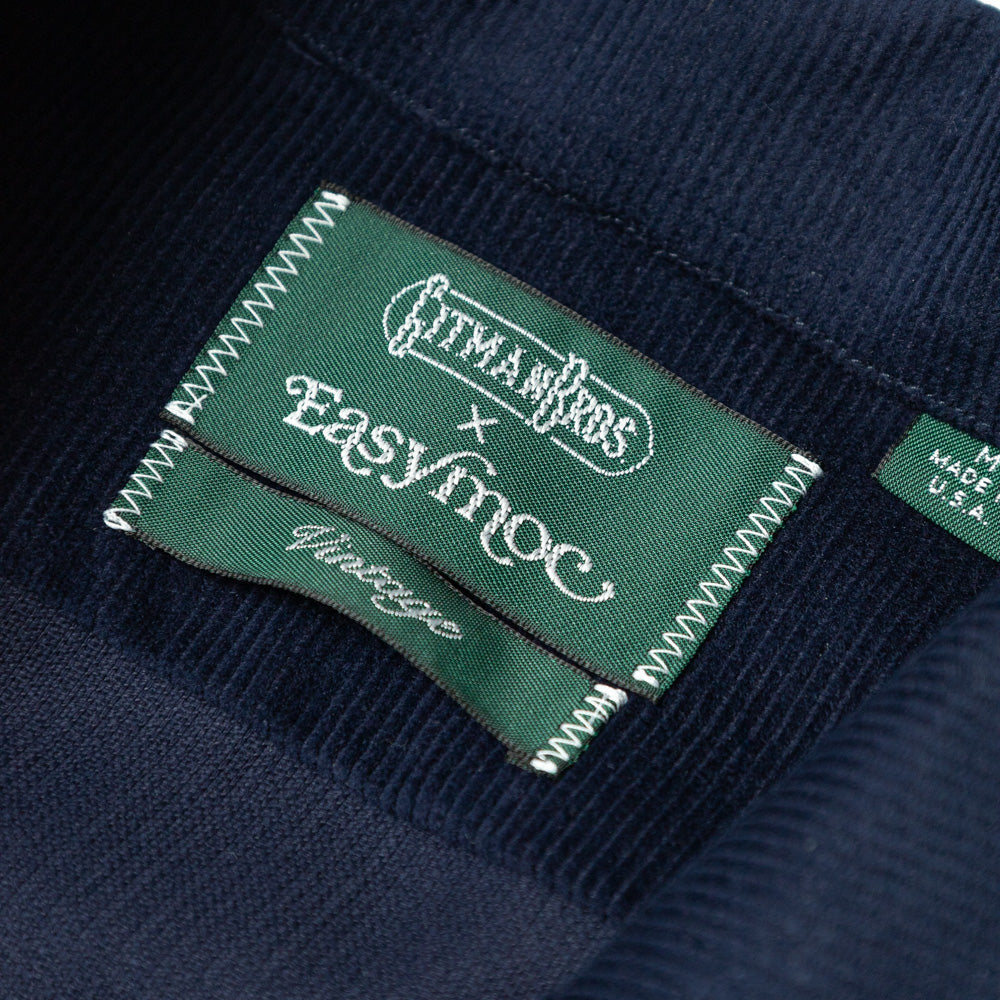 Our collaboration doesn't stop there, however. EasyMoc re-crafted their signature moccasin with the same corduroy fabric that our shirt is cut from. Finished with black metal hardware, leather laces, and a durable Vibram sole, this shoe is similarly robust in its make but casual in its presentation. Head to their site to grab a pair.